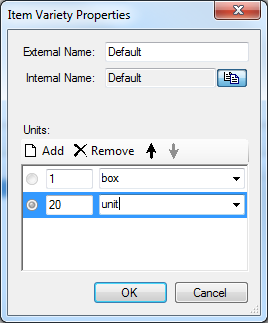 UsingHere the relationship between units is expressed; 1 keg contains 88 pints. The two columns at the start tell Vantage how to track and display the units. The first column with the filter icon is the unit that should be used for tracking stock levels - in this case pints have been chosen. The second column is the unit preferred for display purposes, in this case keg has been chosen. Click OK to save this item.