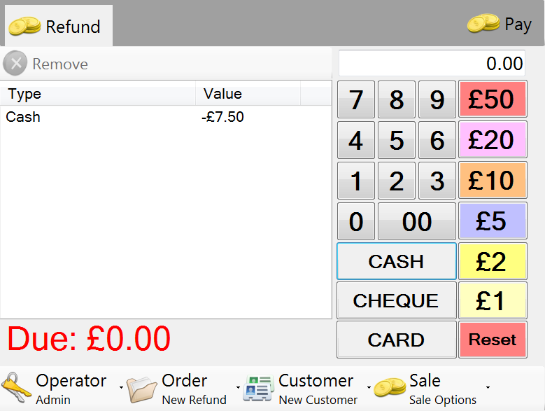 You will see a screen that looks like the usual till payment screen. In a refund, processing payments is the only option available.available: