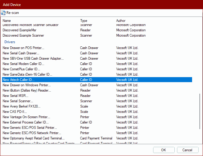 Find the item 'New Artech Caller ID...', and click OK.