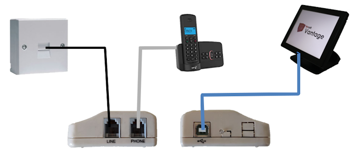 The Artech AD102 caller ID adapter will enable Vantage to read the number of incoming calls from your landline, allowing you to instantly bring up customer details and past orders as soon as you receive a call.