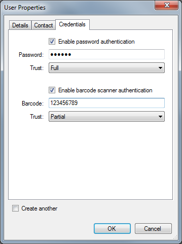The 'Trust' options control how much Vantage will trust the user's authentication. Most tasks are unaffected by this setting, but some very sensitive operations, such as voiding orders, may require full trust. You may want to specify that certain authentication methods, such as barcode authentication, are not sufficient for these operations.