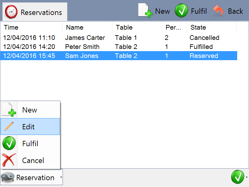 After a reservation has been created but before it has been fulfilled, you can edit its details, for example if the customer has requested a different time or you need to reallocate the reservation to a different table.