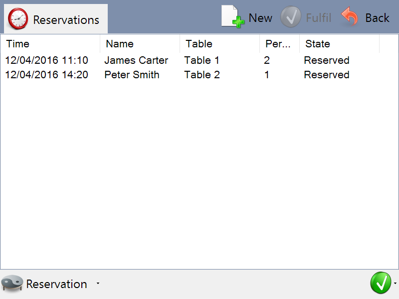 When you next return to the reservations list, you will see that the selected reservation now has the 'Fulfilled' status, and can no longer be edited. It will disappear from the list after a short period of time.